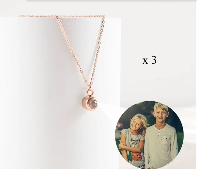 BUY 2 GET 1 FREE Photo Projection Necklace Original Round (Rose Gold) – 3 x FREE Slide-Out Jewelry Box Included