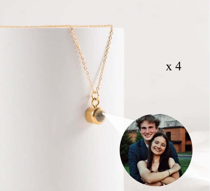 BUY 3 GET 1 FREE Photo Projection Necklace Original Round (Gold) – 4 x FREE Slide-Out Jewelry Box Included