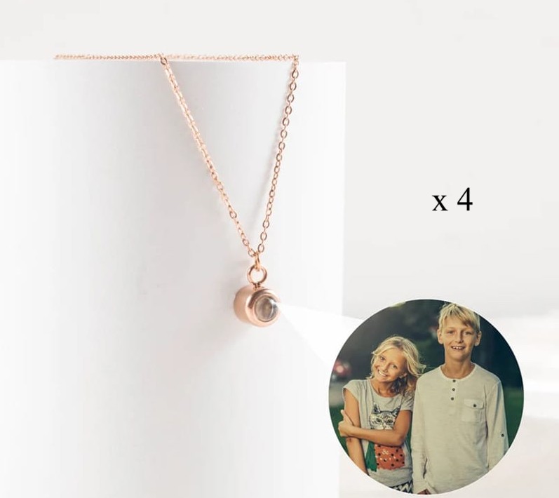 BUY 3 GET 1 FREE Photo Projection Necklace Original Round (Rose Gold) – 4 x FREE Slide-Out Jewelry Box Included