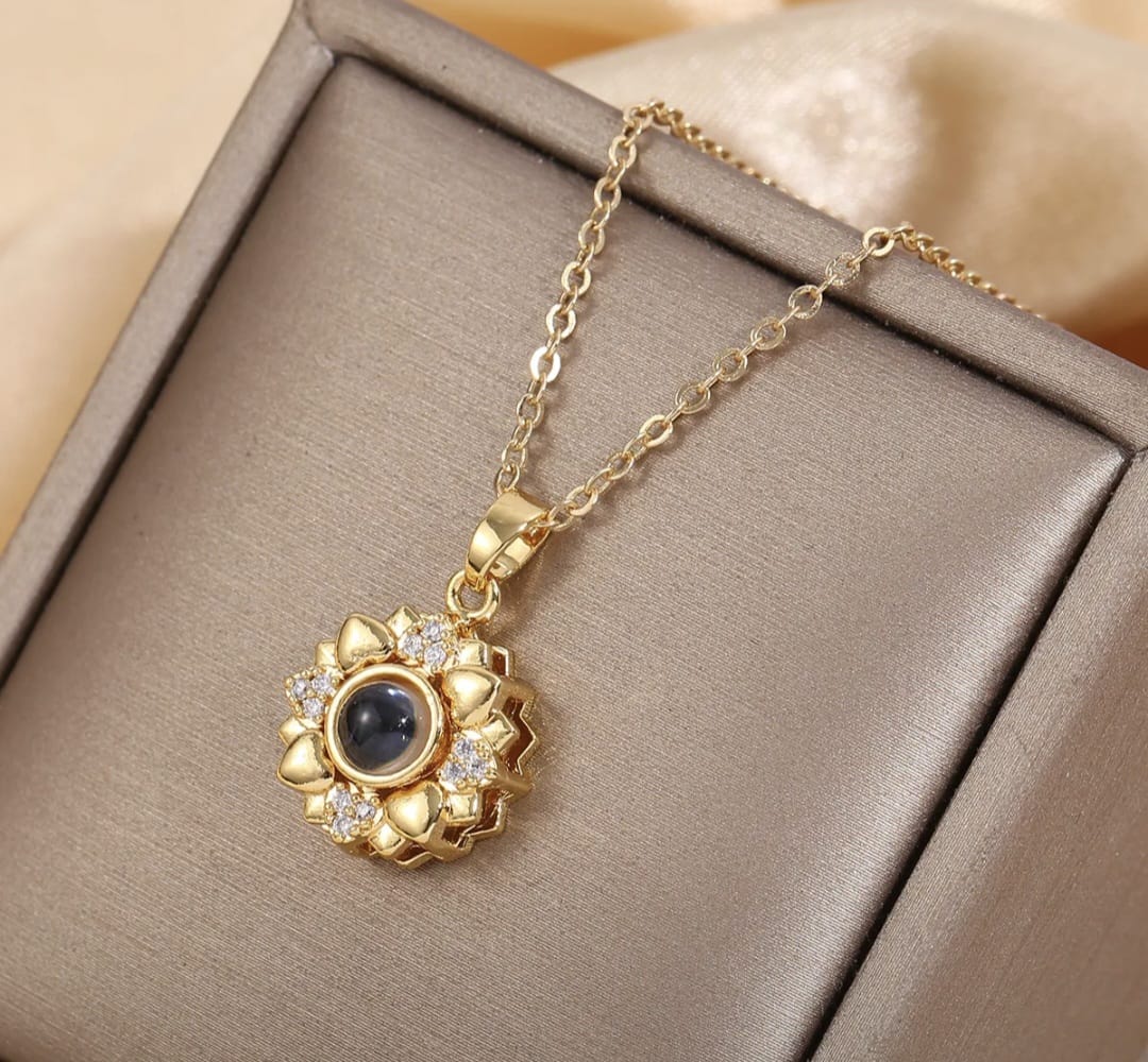 18k Gold Plated Sunflower “I Love You” In 100 Languages Photo Projection Necklace – FREE Slide-Out Jewelry Box Included
