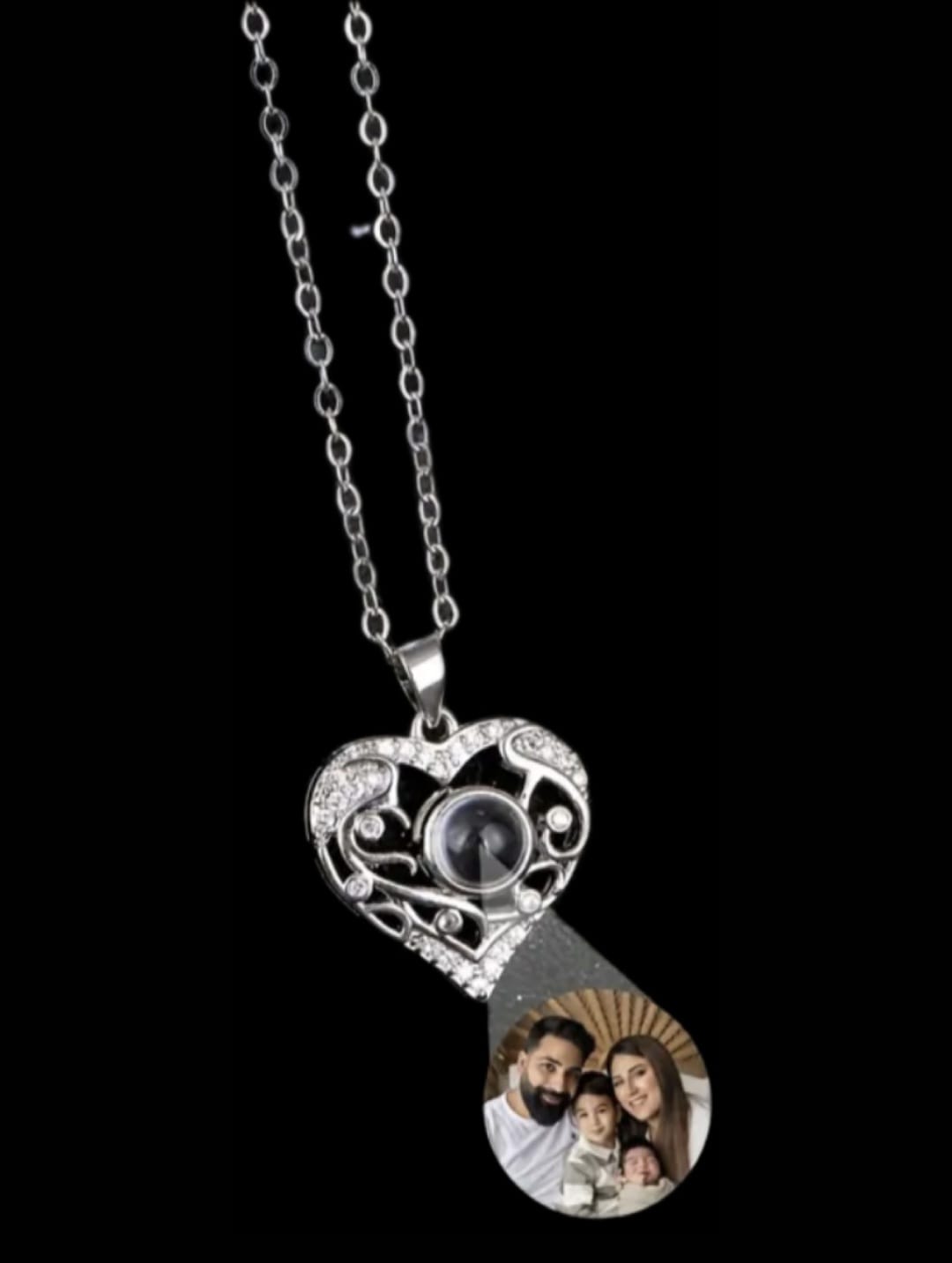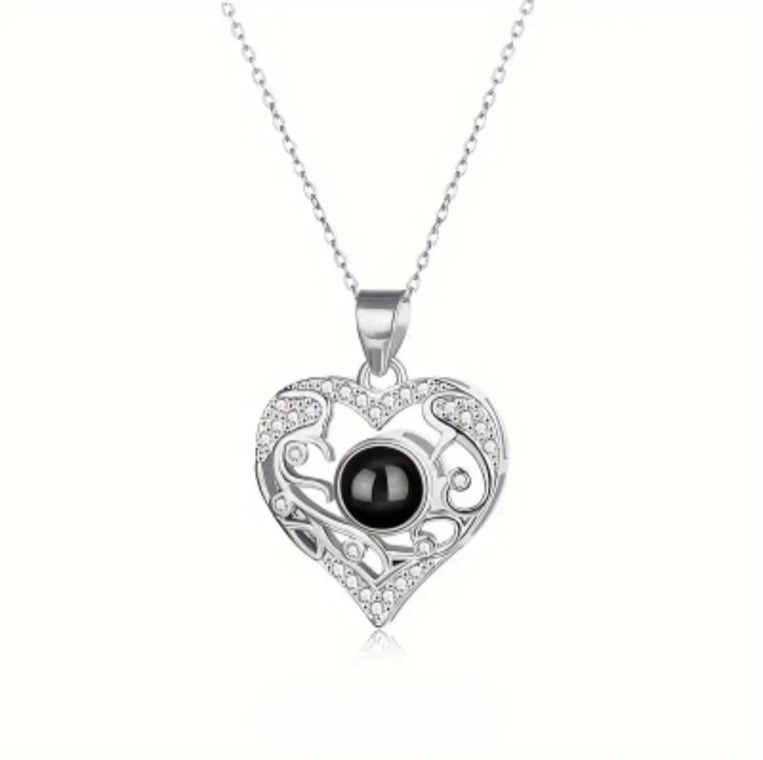 Detailed Heart Photo Projection Necklace – FREE Slide-Out Jewelry Box Included