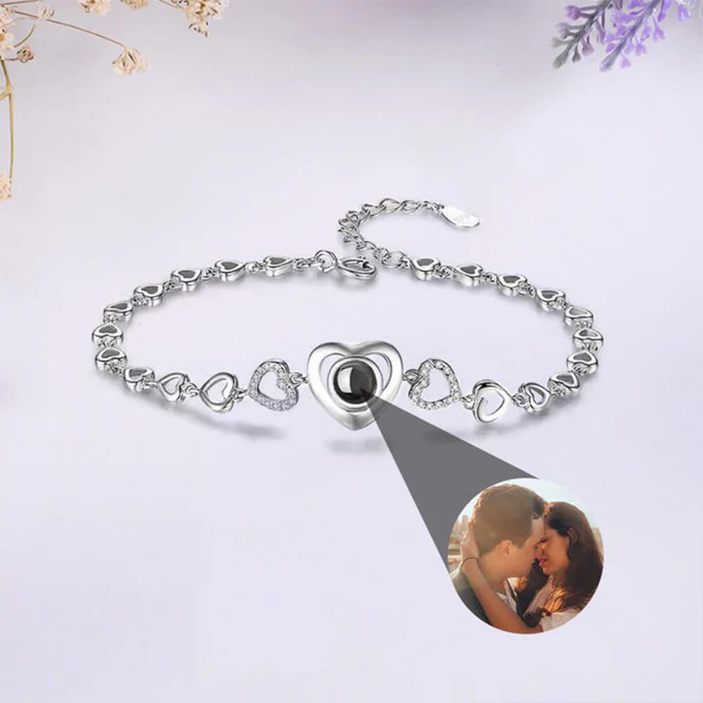 Heart design Zirconia Photo Projection bracelet – FREE Slide-Out Jewelry Box