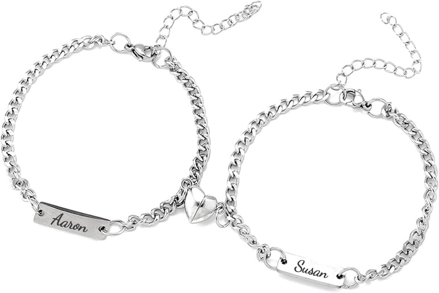 Valentines Special – Engraved 2 Piece Couples Magnetic Heart Bracelets- FREE Slide-Out Jewelry Box Included